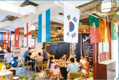 作為球迷狂歡最佳選擇的酒吧、夜市,也將迎來客流高峰。記者連日走訪了西安多家酒吧了解到,不少酒吧已經打出了世界杯主題的廣告牌,店內也裝飾上參賽球隊的各國國旗,有的甚至專門購買了大屏設備吸引顧客,還有一些不少酒吧推出主題優惠、預約有獎等活動。