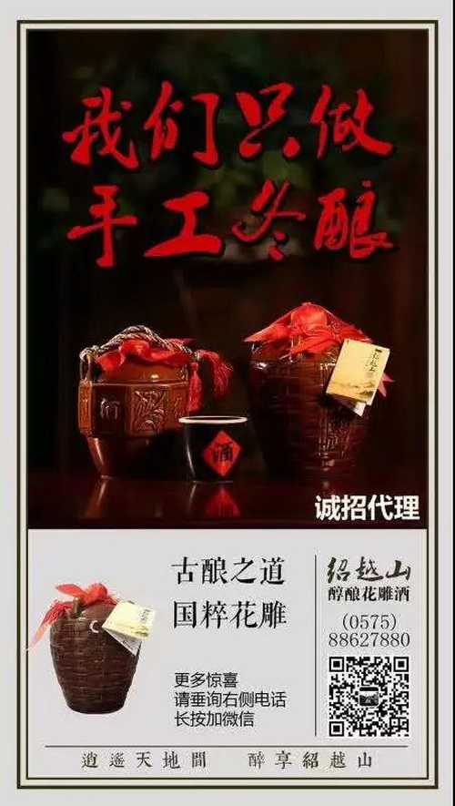 紹越山系列花雕酒,系浙江老字號——紹興市百歲堂酒業(yè)榮譽(yù)釀制。傳承千載歷史,沿續(xù)百年工藝,以精白糯米、優(yōu)質(zhì)麥曲和鑒湖水為主材精釀而成,產(chǎn)品經(jīng)多年窖藏,酒度溫潤爽口,酒色橙黃清亮,酒香馥郁芬芳,酒感幽雅自然,酒味甘鮮醇厚,是符合現(xiàn)代消費(fèi)理念,具有較高養(yǎng)生價值的低度飲用酒。